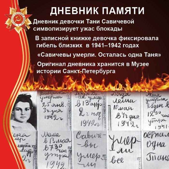 Учащиеся прослушали историю семьи ленинградской девочки Тани Савичевой. О смерти всех членов этой семьи стало известно из дневника, который вела Таня.