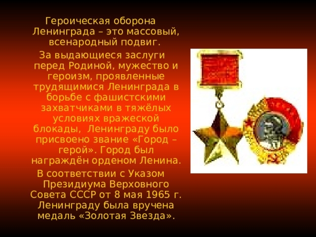 Для защиты ленинградцы построили более 4 тысяч дотов, 22 тысячи огневых точек и 35 км баррикад.Блокада привела к гибели 1 млн 93 тыс. советских граждан.