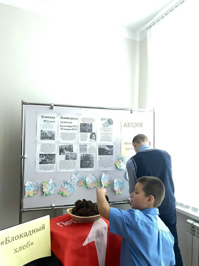 В день памятной даты – 27 января, Дня полного освобождения Ленинграда от фашистской блокады, в Каменно-Бродской школе прошло мероприятие, посвященное 900 дням мужества, стойкости и непоколебимой веры в Победу! Под руководством советника директора по воспитанию Ивановой Т.П. и куратора Первичного отделения «Движения Первых» Яковлевой Л.В. обучающиеся 1-8 классов приняли участие в событиях, призванных сохранить память об этом героическом периоде. Учитель истории Иванова Л.Н. рассказала о мужестве и стойкости мирных жителей Ленинграда в годы блокады. Была продемонстрирована видеопрезентация «Подвиг длинною в 900 дней и ночей». Активисты «Движения Первых» провели акцию «Блокадная ласточка», объяснив ее значение. В тяжелые дни блокады жестяная ласточка с письмом в клюве служила символом надежды на добрые вести и скорую победу, олицетворяя стойкость и связь с близкими. Школьники также приняли участие в акции «Блокадный хлеб», получив по 125 граммов хлеба, что символизирует норму выдачи в блокадном городе. С каждым годом учащиеся все глубже проникаются рассказами о тех страшных временах, испытывая сочувствие к жертвам блокады. Память о блокаде Ленинграда – это не просто исторический факт, а урок, который мы обязаны усвоить, чтобы сохранить мир, завоеванный ценой огромных жертв!