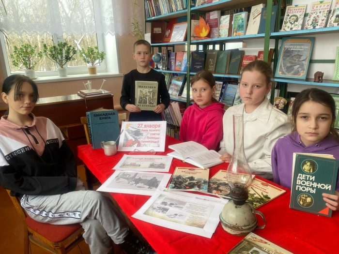 Блокада Ленинграда — это та правда Великой Отечественной, к которой трудно прикасаться. Второго Ленинграда в истории современных войн не было. Ни одному городу не довелось выдержать столь жестокую и продолжительную осаду и остаться неприступным. Ни один город не принес для Победы такую жертву. 27 января 1944 года гитлеровцев окончательно отбросили от стен Северной столицы. В тот вечер тысячи людей нашли в себе силы, чтобы выйти на улицы, когда ленинградское небо расцветили вспышки салюта. Это воспринималось как чудо. Как рубеж. Позади — 872 дня смертельной опасности. Впереди — возрождение. Изможденный, обессиленный город расцвел среди зимы. К 82 летию снятия блокады, сотрудники Межпоселенческой детской библиотеки провели час патриотизма «900 дней мужества. Дневник Тани Савичевой». Участники мероприятия, воспитанники реабилитационного узнали о причинах возникновения блокады, о героизме жителей города. Библиотекарь рассказала про семью Тани Савичевой и про дневник, которая вела девочка. Ленинград продолжал жить, несмотря на сгоревшие продовольственные склады, на нормы выдаваемого хлеба, на крепкие морозы, постоянные бомбёжки… И что на протяжении всего этого времени работали школы, музеи, заводы, не замолкало ленинградское радио, где выступали поэты и писатели, про то, как слушали ленинградцы 9 августа 1942 года 7-ю симфонию Дмитрия Шостаковича Вспоминали о легендарной Дороге жизни.