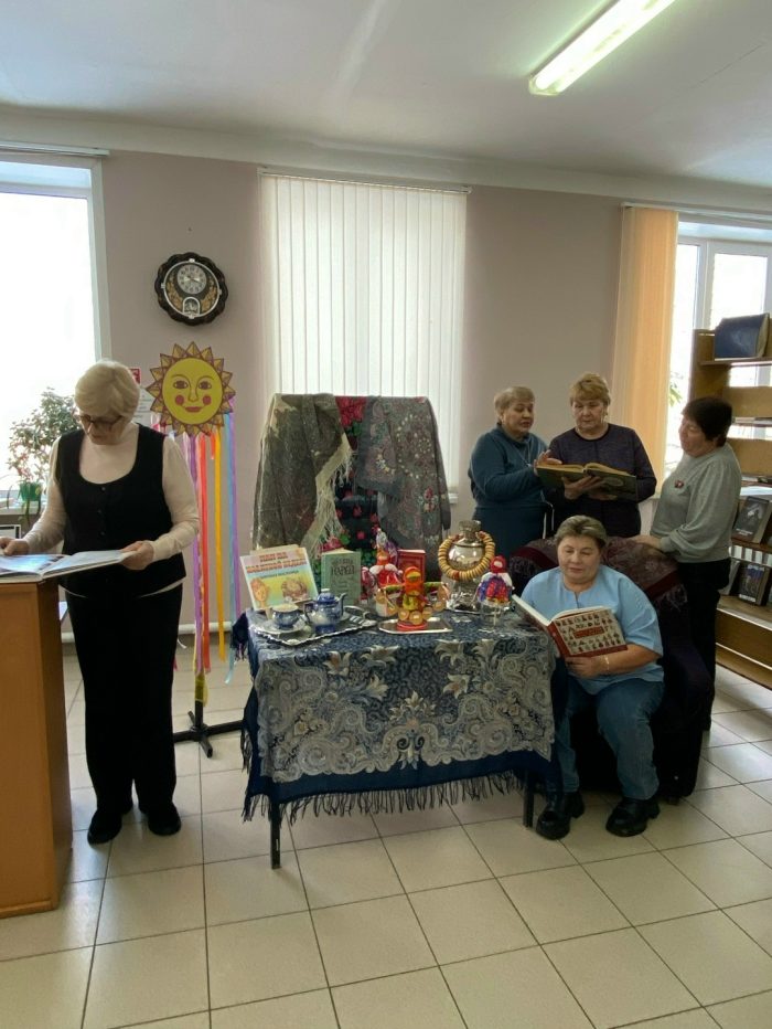 Литературно-музыкальная программа «Масленичные гулянья» в библиотеке собрала участников хора «Ветеран» и волонтеров серебряного возраста для празднования одного из самых ярких русских праздников — Масленицы. Зал был украшен самоварами, блинами и веселыми изображениями солнца.
