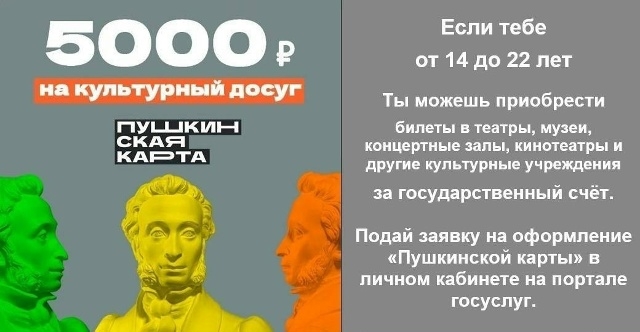 Афиша мероприятий по Пушкинской карте регулярно обновляется и доступна в приложении и на портале «Культура.рф» и на сайте библиотеки lib.chelna.ru/