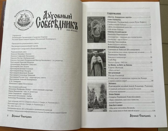 Журнал «Духовный Собеседник» — уникальное издание с замечательной и уже довольно продолжительной историей. Первый его номер вышел в 1995 году по благословению епископа Самарского и Сызранского Сергия митрополита Самарского и Тольяттинского. Его инициатором и главным редактором стал потомственный военный журналист Игорь Макаров — молодой верующий человек.«Духовный Собеседник» — это журнал для тех, кто любит Россию. Это издание для семейного чтения, где найдут многое для себя интересное те, кто стремится к духовной жизни, кому важно узнать ответы православных святых, мыслителей, архиереев и священнослужителей на волнующие их вопросы, кому интересна наша история.В журналах Вы сможете найти статьи из следующих разделов: «Историческая память», За Жизнь, за Веру, за Любовь», «Летопись», «Меч духовный», «Уроки истории».