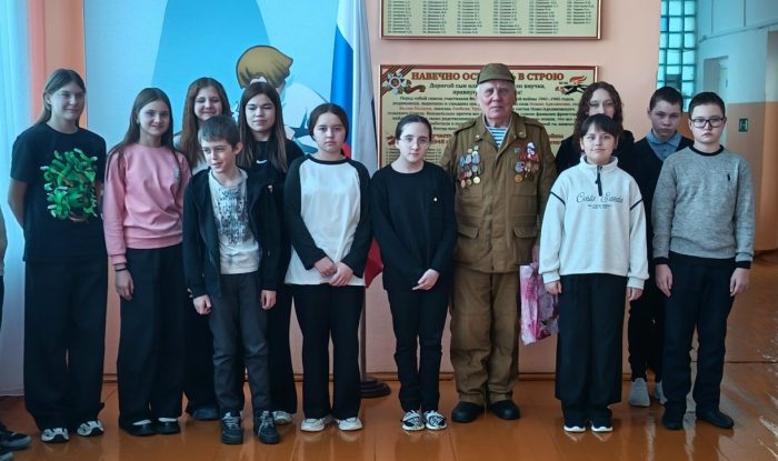 На мероприятии присутствовал участник боевых действий — Валентин Иванович Куликов. Ветеран. Очевидец. Человек, который знает о той войне не по наслышке.Ветеран поделился воспоминаниями о службе, рассказал о трудностях армейской жизни и о важности верности Родине и присяге. Ребята слушали, затаив дыхание. В классе стояла полная тишина — и это, наверное, лучшее доказательство того, что слова ветерана задели за живое.
