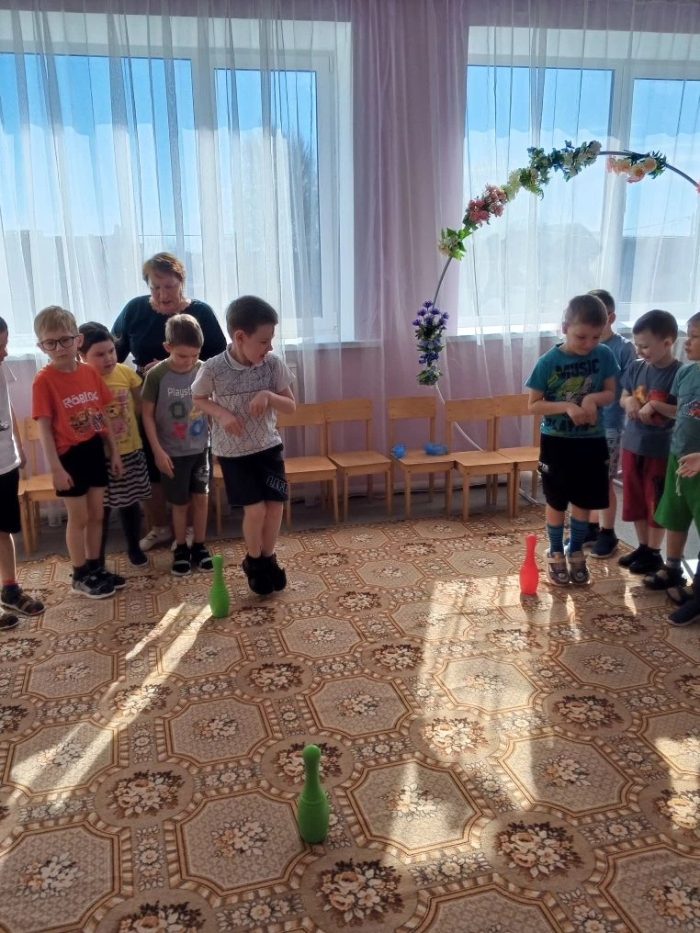 Поиграли в подвижные игры «Колобок», «Золотые ворота», «Ядро барона Мюнхгаузена»…