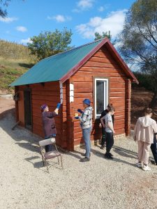 благоустройство Токмаклинского водопада: установлены срубовая беседка и 2 трапа.