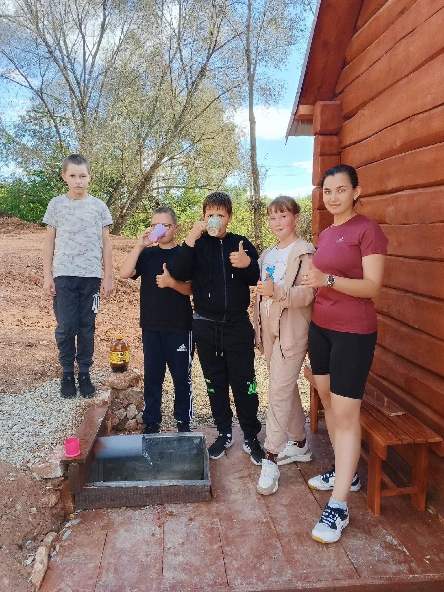 В рамках проекта установили деревянный срубовой домик над родником, обустроили водосток и купель, лестницу для спуска в купель, в домике установили окна и дверь, отсыпали дорожку от домика до дороги песчано-гравийной смесью.